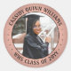 Añada un toque personalizado a los anuncios de graduación de la universidad o la escuela secundaria y a las invitaciones con estos pegatinas/sellos para sobres redondos de mármol gris fotográfico. (IMAGEN PLACEMENT TIP: Una manera fácil de centrar una foto exactamente como quieres es recortarla antes de subirla al sitio web de Zazzle.) Todo el texto es sencillo para el personalizar de incluir el nombre de la escuela, felicitaciones graduadas, amor y agradecimiento, cita inspiradora, proverbio motivacional, etc. El diseño presenta una imagen de su elección, un borde de Relieve metalizado metálico de color rosa negro y rosa falso, y un elegante nombre de graduado en tipografía moderna y año de clase en círculo. Hace una elegante adición a los favores y decoraciones de la fiesta de graduación. Como opción, cambie el texto curvo a un nombre y dirección para usarlos como etiquetas de dirección de retorno redondeadas en invitaciones o notas de agradecimiento. Estas etiquetas versátiles pueden utilizarse para cualquier ocasión, como cumpleaños, aniversario, boda, ducha de novia, ducha de bebé, etc.