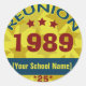 Personalizar este clérigo o pegatina de la Reunión de Clase con su año de graduación, número de reunión y nombre de la escuela. Animadas estrellas doradas con un diseño rojo y azul. Disponible en el botón o pegatina del pin. Personalizable completo para su evento de reunión.