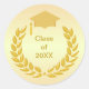 Elegante laurel de oro Clase de 20XX graduación en Pegatina de gradiente dorado. Texto listo para ser personalizado.