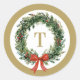 Pegatina Redonda Clásica corona de Navidad con monograma inicial en