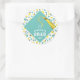 Pegatinas de regalo de graduación, etiquetas de favor de fiesta y sellos de sobre con gorra de graduado azul turquesa y borla dorada sobre fondo de confeti. Para personalizar, edite el texto para agregar el año y personalizar según sea necesario.