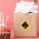Pegatinas de fiesta de graduación con diseño de gorra negra y dorada sobre fondo amarillo. Edite el texto para agregar el nombre del graduado y el año.