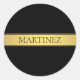 Pegatina Redonda Clásica Faux Gold Stripe & Black Background o DIY