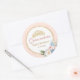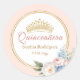 Pegatina Redonda Clásica Flora Azul Rosa Quinceanera