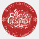 Pegatina Redonda Clásica Personalizado Roja y Blanca Feliz Navidad