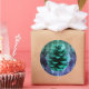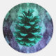 Pegatina Redonda Clásico argyle pinecone rústico azul