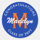 Pegatina Redonda Clásico de graduación naranja y Personalizado azul