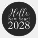 Pegatina Redonda Clásico de Nochevieja Negro y Blanco