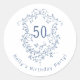 Pegatina Redonda Clásico Escudo floral azul francés 50 cumpleaños