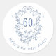 Pegatina Redonda Clásico Escudo floral azul francés 60 cumpleaños