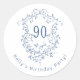 Pegatina Redonda Clásico Escudo floral azul francés 90 cumpleaños