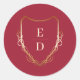 Pegatina Redonda Clásico Monograma Crimson Red Golden