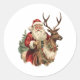 Pegatina Redonda Clásico Santa Claus montando Navidades de renos