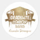 What better way to start the celebration of your graduation than by throwing a grad party with invitations using this awesome favor sticker! The design comprises of a Typography quote "Graduate Class of xxxx", with graduation hats and certificates as illustration of the event. A gold glitter texture is used for the design. You can personalize your Name and graduation date on it. For further font style, size, additional texts and background color customization, use Zazzle's Design tool.