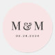 Pegatina Redonda Classic Blush Pink Monogram Typography Wedding