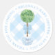 Pegatina Redonda Classic Boxwood Topiary Blue Baby Shower Gracias