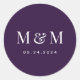 Pegatina Redonda Classic Dark Purple Monogram Typography Wedding