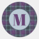 Pegatina Redonda Classic Purple Teal Plaid Monogram Envelope Seal
