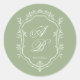 Pegatina Redonda Classic Sage Green & White Monogram Crest Wedding