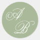 Pegatina Redonda Classic Sage Green & White Monogram Script Wedding