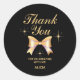 Un elegante y elegante pegatina de cumpleaños con una linda cinta dorada y la tipografía moderna "Gracias", con un fondo negro. Personalizar para que se adapte a sus necesidades.