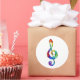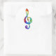 Polígono, arcoiris, brillante clave musical sobre fondo blanco. Tatuaje de polígono. Treble clef