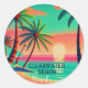 Pegatina Redonda Clearwater Beach Florida Tropical Palm Tree 1950