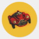 Pegatina Redonda Coche de Carreras automática amarillo rojo antiguo