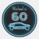 El efecto neón azul sobre el negro hace una impresión audaz para el cumpleaños de un hombre especial. Puede tener cualquier nombre y edad para coincidir con el super-auto cian en el gráfico, todo enmarcado por un círculo de coordinación.