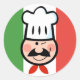 Un cocinero de guiño delante de un círculo que contiene la bandera de Italia.