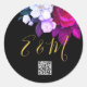 Pegatina Redonda Código QR Elegante Rosa morado Monograma Boda Cl