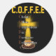 Pegatina Redonda Coffee Christ Ofrece Perdón Para Todos