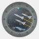 Pegatina Redonda Cohetes a través de la mirilla de una nave espacia