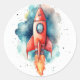Pegatina Redonda Cohetes acuáticos que vuelan por las estrellas