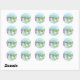 Un pegatina suave y bonito decorado con un colibrí que visita algunas flores de hollyhock rosa lavanda pintadas con acuarela.