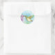 Pegatina Redonda Colibrí Rosa Hollyhock Flores Azules