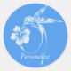 Pegatina Redonda Colibrí Sencillo y Elegante Azul y Blanco