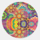 Pegatina Redonda Collage Floral Mandala Psicodélico