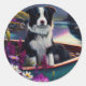 Pegatina Redonda Collie fronteriza en un remo: Una aventura escénic