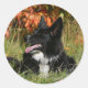 Pegatina Redonda Collie Fronterizo Pantando Abajo
