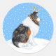 Pegatina Redonda Collie Navidades Reindeer Tri