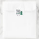 ¿Te gustan los gatos? Te encantará este pegatina adorable con un gatito gris adorable vestido con un uniforme de guardia de color verde y blanco mientras sostiene una bandera verde.