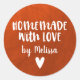 Un pegatina "casero con amor" personalizado con un fondo de color rojo. Hazlo tuyo añadiendo tu propio nombre. Un toque final de bonito para todos tus regalos hechos a mano de Navidades. Diseñado para ti por Blackberry Boulevard.