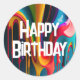 Pegatina Redonda Colores arcoiris Feliz cumpleaños