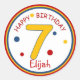Pegatina Redonda Colores primarios Feliz cumpleaños número 7