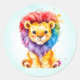 Pegatina Redonda Colorida acuarela león cualquier género Baby Showe