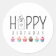 Pegatina Redonda Colorida casa de pasteles Felices Cumpleaños Realt