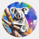 Pegatina Redonda Colorida Esplash acuático del oso de Koala,