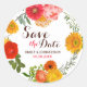 Pegatina Redonda Colorida Floral Wreath- Guardar la fecha