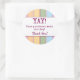 Si buscas un colorido, quizás único y destacas la manera de agradecer a los clientes por su compra, quizás aprecies este colorido y divertido "Yay! ¡Tu compra nos hizo el día!" Business Gracias Pegatina de Ronda Clásica de Zazzle! Disponible en hojas pequeñas de 20 y grandes de 6 en acabado brillante o mate. Vendidos por la hoja o en cantidades de 2-500 (hojas). Compra el texto como está o personalizar fácilmente el texto en el frente para satisfacer tus necesidades de regalos. ¡Perfecto para añadir sobres, embalajes, bolsas de regalo y más! Ahorre cuando compre más - sin mínimos. Garantía de 100% de satisfacción.